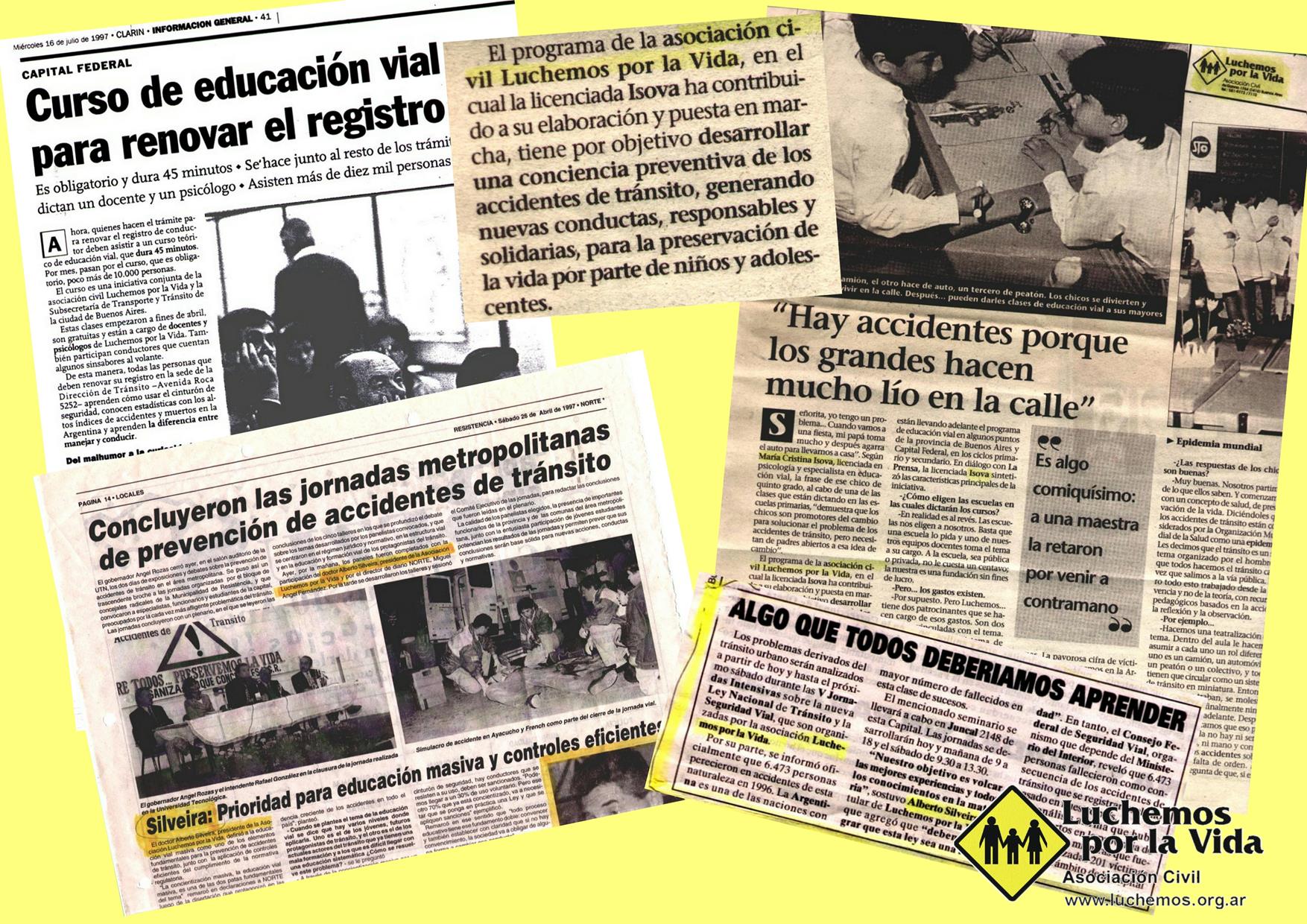 - Luchemos was concerned about the irresponsible issuance of driver's licenses. Most drivers had not received any driver's education. Therefore, a comprehensive theoretical and practical restructuring project was presented for driver's license issuance in the City of Buenos Aires, and its authorities became interested in an innovative proposal: mandatory workshops for driver's license renewals. More than 1,170,000 drivers participated in these in-person workshops on key topics related to safe driving, designed and delivered by Luchemos from 1994 to 2008, using its own materials. This initiative continues online to this day in the City of Buenos Aires, having been adopted as a model by many municipalities to improve their licensing.