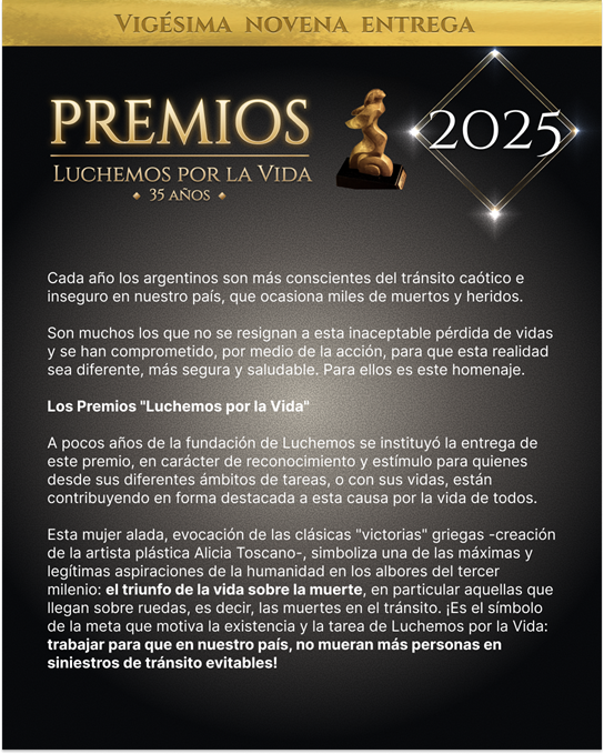 Desde 1996, Luchemos realiza estos reconocimientos anuales. En estos 29 años, ya han sido entregados 530 Premios. Te esperamos junto a nuestros premiados, ellos también, Luchadores por la Vida.